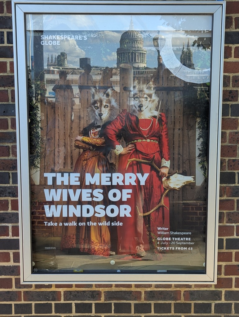 It was a wonderful coincidence when Shakespeare’s Globe posted their 2025 summer season, because they were doing Merry Wives of Windsor, which I had already decided to teach for my Literary London course. This followed them doing Richard III in 2024, while I was teaching that play. It was more surprising, however, that they are doing Merry Wives this year, since the play isn’t put on that much. However, under the direction of Sean Holmes, the production was very good.
