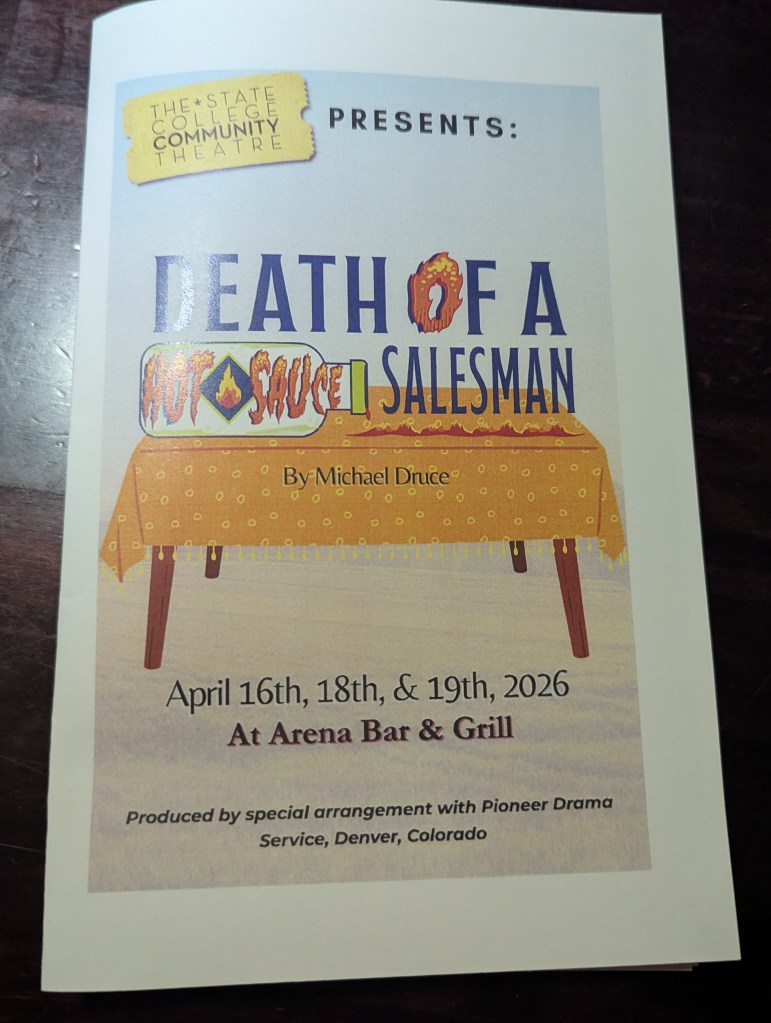 In State College Community Theatre’s production of Michael Druce’s Death of a Hot Sauce Salesman, directed by Kerry Clancy Burns, the acting far outshone the script. The performances were generally strong, but the script really didn’t give the cast and crew much to work with, being full of holes, poorly balanced, and generally a mess.