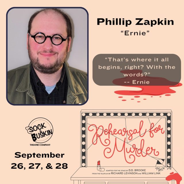 In September 2024, I played Ernie, the stage doorman, in Sock & Buskin’s production of Rehearsal for Murder, by D.D. Brooke. The show was directed by Stefanie Austin.